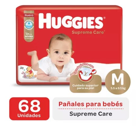 La máxima protección de Huggies Supreme Care, para la piel. Con canales suaves hecho con fibras naturales y respirables en forma de X, que distribuyen el pis de manera más uniforme a lo largo del pañal para mantener la piel de tu bebé seca, fresca y protegida.