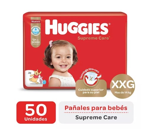 La máxima protección de Huggies Supreme Care, para la piel. Con canales suaves hecho con fibras naturales y respirables en forma de X, que distribuyen el pis de manera más uniforme a lo largo del pañal para mantener la piel de tu bebé seca, fresca y protegida.
