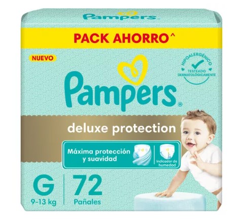 El nuevo Pampers Deluxe Protection ofrece la máxima protección y suavidad de Pampers. Es ultra respirable, hecho con tela ultra suave que mantiene la piel de tu bebé seca y libre de irritaciones. Esta versión, posee un diseño con indicador de humedad, además se adapta muy bien al cuerpito de tu bebé.